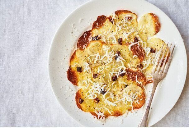 ピザ生地をじゃがいもで代用することで、生地をつくる手間がかからず、手軽にピザを楽します。カリッと焼き上げたじゃがいもに、塩気のあるチーズとしらすの旨味が加わることで、シンプルな材料でもおいしくいただけます。
