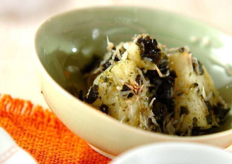 ホクホクのじゃがいもにしらす、焼きのりの磯の香りが食欲をそそる、しらすのりジャガ。焼きのりに火をとおすことで香ばしい味わいに。しらす干しの代わりに、しらすの佃煮を使っても甘みがよく合っておいしいですよ。