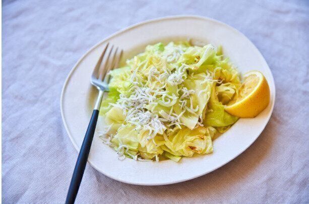 調味料はオリーブオイルとレモンだけ。シンプルですが、しらすの塩気と春キャベツの甘味があるので、味つけがなくてもおいしくいただけます。春キャベツはオイル蒸しにすることで、甘味がよりアップします。