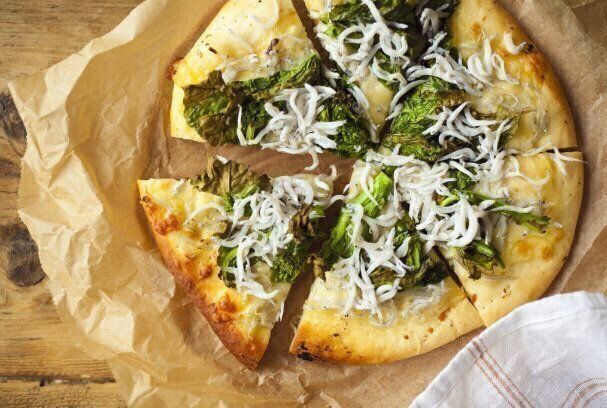 菜の花のほんのりとした苦みとしらすの塩気はピザとの相性抜群です。トッピングでは味噌を生地に塗ることで、風味豊かなコクのある和風ピザに仕上がります。