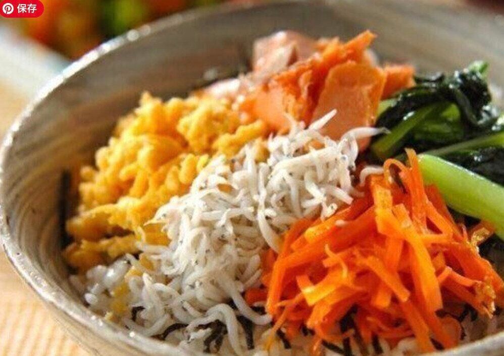彩り豊かな鮭とシラスの和風ビビンバのレシピです。塩鮭としらすの塩味と、ゴマ油のきいたナムルはご飯との相性抜群。小松菜やにんじんの和え物などを事前につくっておくことも可能です。