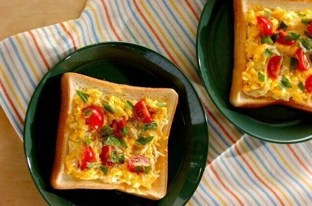 朝ごはんにぴったりのオープンオムレツサンド。風味豊かなしらす干しと卵は、相性ばっちりの組み合わせです。約8分で完成するので、いそがしい日も重宝しそうですね!