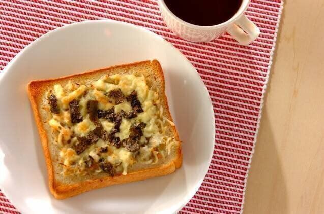 しらす干しにチーズ、のり、みそとたまらない組み合わせのトーストレシピです。チーズはこんがりするまで焼くのがポイント!コーヒーとの相性もよさそうです。