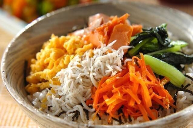色とりどりで見た目も華やかな和風ビビンバのレシピです。お子さんが苦手になりやすい野菜や魚もビビンバにすることで食べやすくなります。鮭やシラス自体に塩気があるので、薄味でもおいしくいただけます。