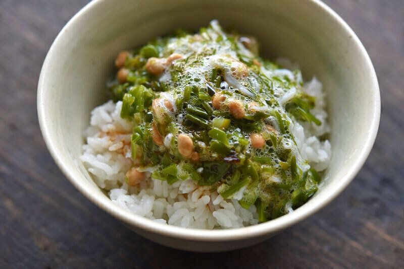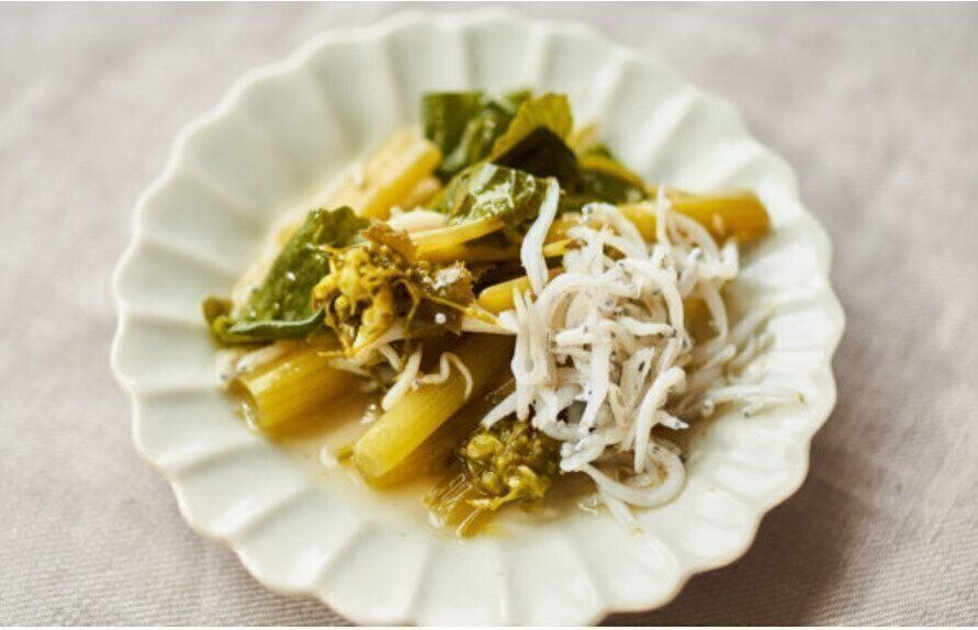 ピリッとした辛みとさわやかな風味で、春を感じることのできる花わさび。そこにしらすの旨みが加わり、絶妙な相性のおひたしに仕上がります。味つけはだしや醬油でさっぱりと。美容や健康にも◎のおいしい1品です。