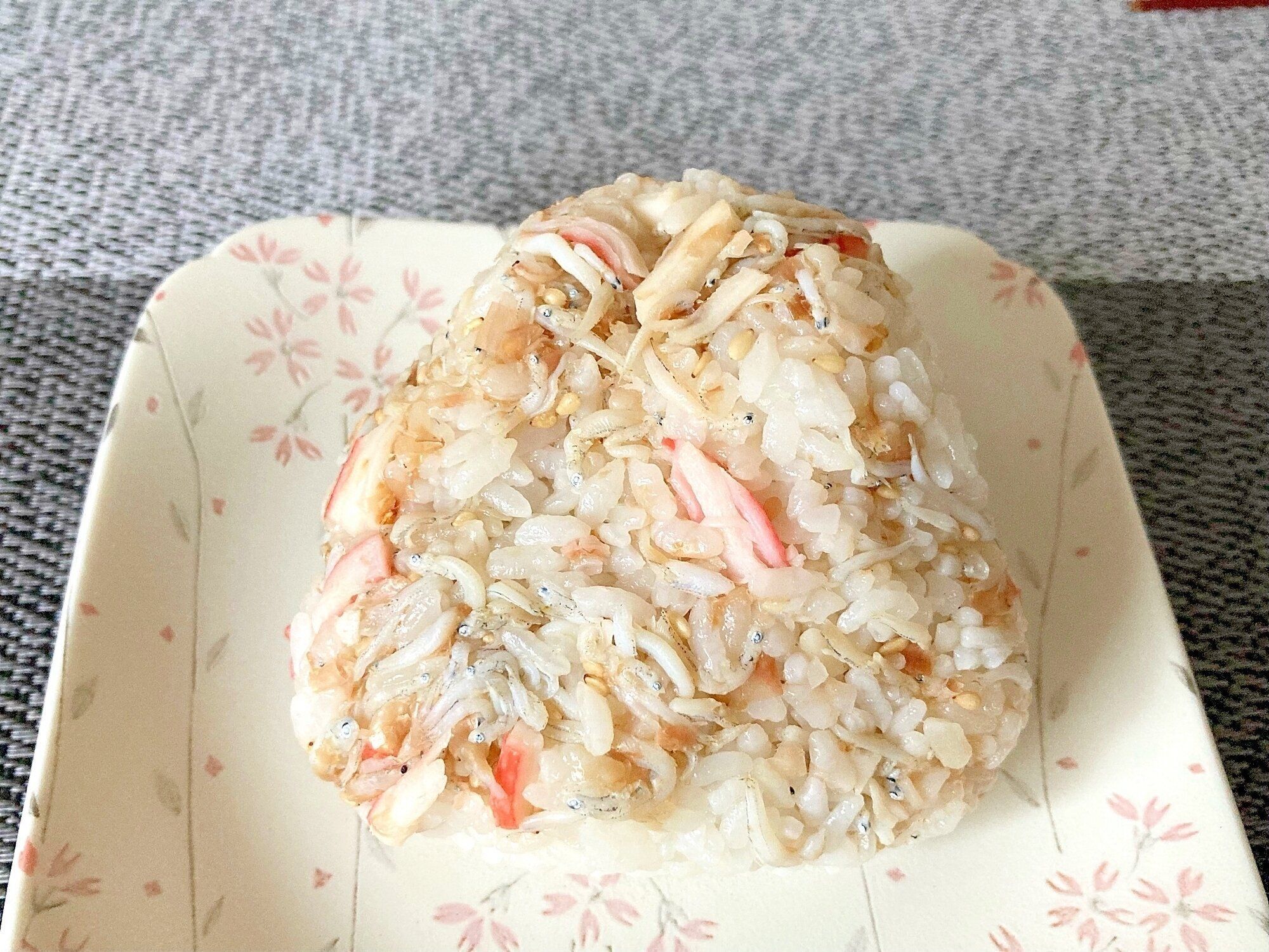 カニカマとしらす干しの混ぜごはんおにぎり