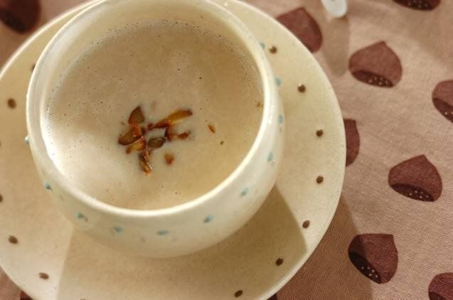 むき甘栗を牛乳と混ぜ合わせた、ポタージュレシピです。ほどよい甘さと、濃厚な味わいがパンのおともにもぴったり。仕上げのポーションミルクを加えるひと手間がポイントです。