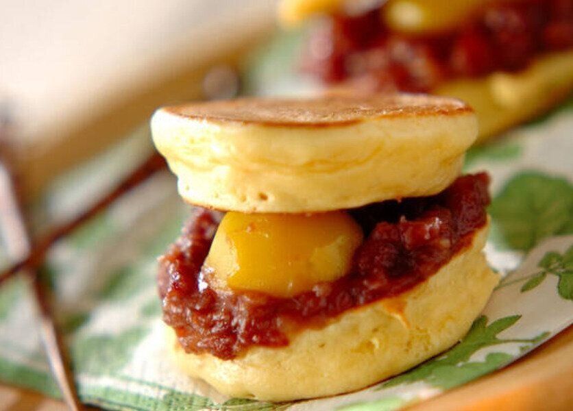 ホットケーキミックスと白玉粉を使ってつくる、モチモチ栗どら焼き。約10分で完成するお手軽レシピです。白玉粉のモチモチ食感がポイントで、ゆで小豆と栗の甘露煮をたっぷりサンドしていただきます!