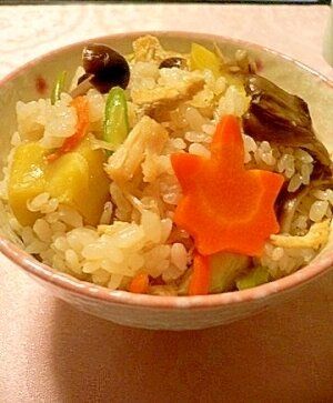 色づく秋に、きのこと栗の五目炊き込みご飯