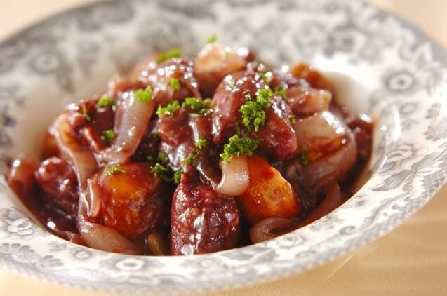 栗と赤ワインの風味が相性バツグンの蒸し煮料理。おもてなしにも喜ばれるメインおかずです。煮込む前に、下準備として鶏もも肉を赤ワインにじっくり漬けておくのがポイント。