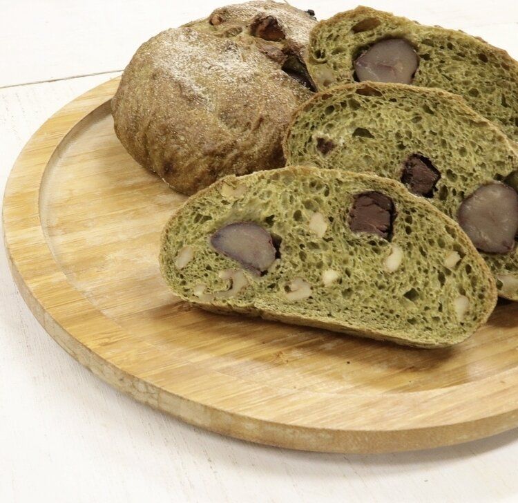 味わい深いハードパンのレシピ。ゴロゴロ入っている栗と、チャンクチョコの歯ごたえがクセになります。生地に混ぜ合わせる抹茶は、多めの水に溶いてから使うとなじみやすくなりますよ。