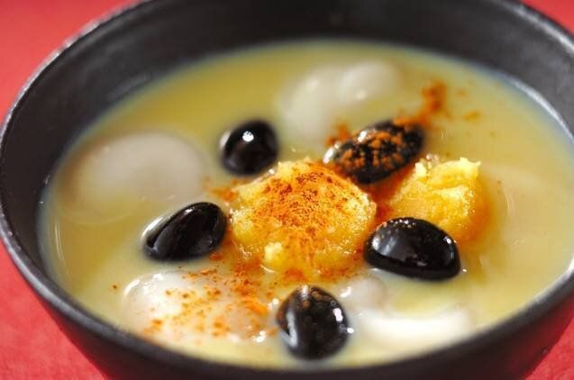 栗きんとんと黒豆を白玉おしるこにアレンジしたレシピです。牛乳をプラスすることでクリーミーな風味が楽しめる一品に。焦げつかないように混ぜながら温めるようにしてくださいね。