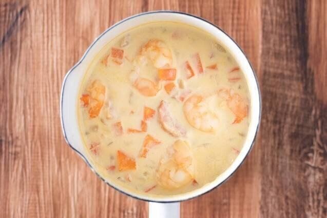 海老とベーコンの具沢山豆乳チャウダー