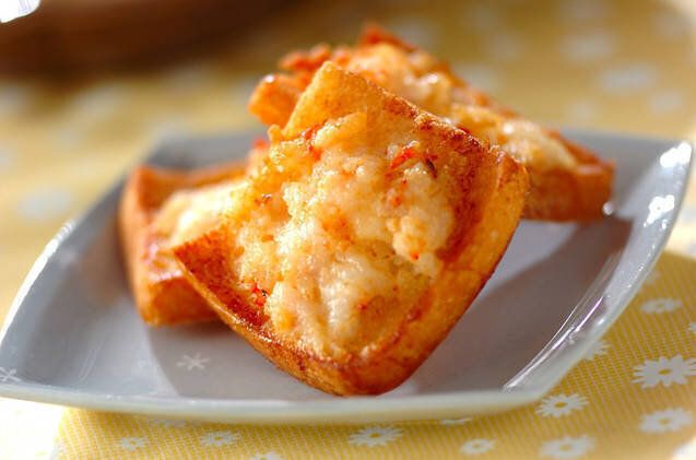 プリっとした海老の食感とサクっと香ばしい食パンの両方が楽しめる揚げ焼きパン。塩コショウのみのシンプルな味付けが、いっそう具材の旨味を引き出します。おつまみにもぴったりの大人のためのトーストです。