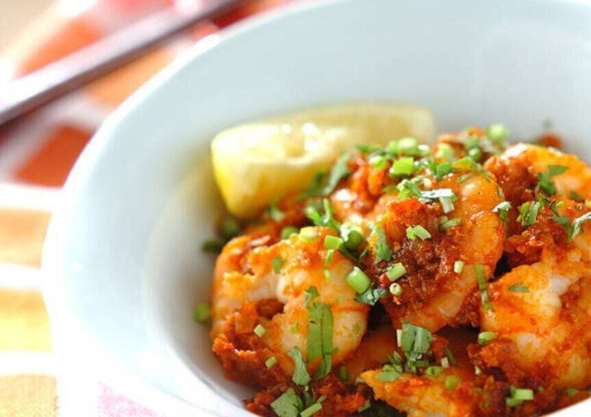 豆板醤のピリ辛風味と、たっぷりのエビの旨みで、モリモリ食べられそうなエビの辛味ダレ。仕上げにレモンや香菜を添えて、エスニックな味わいに仕上げます。メイン料理におすすめの炒め物レシピですよ。