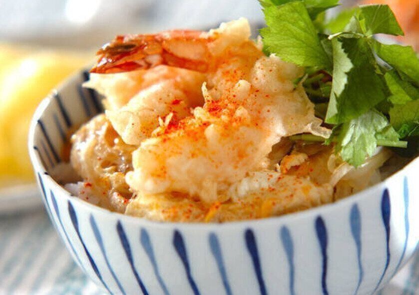 合わせだしで煮た具材と、トロトロの卵、サクッと揚げたエビのコンビネーションを楽しめる丼ものレシピです。三つ葉を添えたり、アクセントに一味唐辛子をかけたりして、味を調節するのもよいですね。