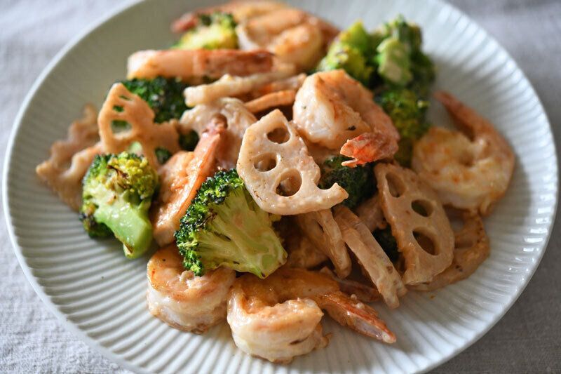 ブロッコリーやれんこんなどをプラスした野菜たっぷりのエビマヨ野菜炒めのレシピです。生姜やにんにくなどをプラスすることで、ご飯のおともにもピッタリのおかずに。丼ぶりとして食べるのもおすすめです。