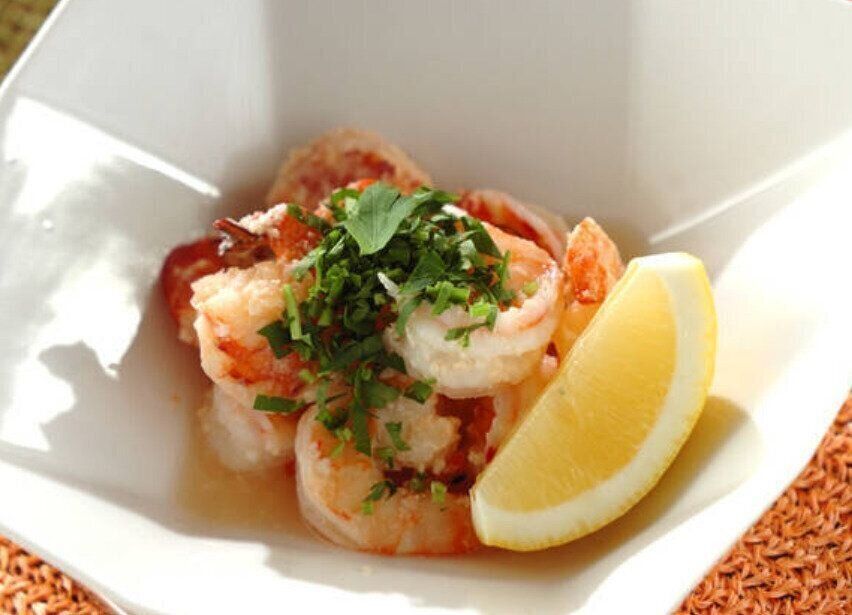 お酒と一緒に食べたいハワイ風ガーリックシュリンプのレシピです。塩コショウとにんにくはお好みで量を調整することもできます。彩りに青ねぎのみじん切りを振りかけて完成です。