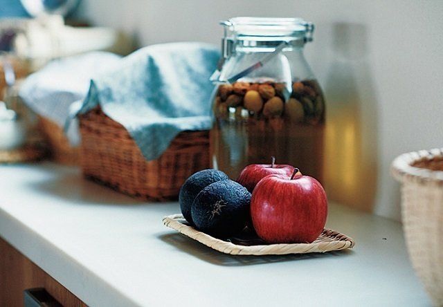 〝雑貨類〞は処分した代わりに、季節の野菜や果物などを、食べるまでの間に飾って楽しみます。「ラベルがおしゃれな海外産のびんビールも、しばらく飾って、飲んだら処分(笑)」。