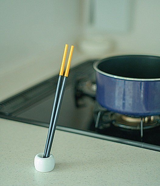 調理中の菜箸はコロコロころがりやすく、いちいち探すのが手間。箸先についた油汚れなどを広げるもとにも。そこで、歯ブラシ立てに差すようにしたら、この悩みが一気に解消!インスタグラマー えりかさん)