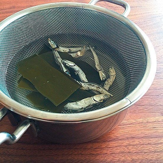 だしをとるのは時間がかかるもの。夜寝る前、鍋にざるをセットし、水と昆布、煮干しを入れて冷蔵庫に。朝、ざるを引き上げ、鍋を火にかけるだけで、すぐにみそ汁が作れます。(ライフオーガナイザー 中山あいこさん)