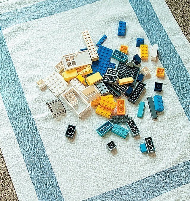 ブロック類は、広げた布の上だけで遊ぶルールに。遊び終わったら、布の端を持っておもちゃ箱に入れるだけなので一瞬で終了!「片づけて!」と怒るストレスもゼロに。(インスタグラマー mariさん)