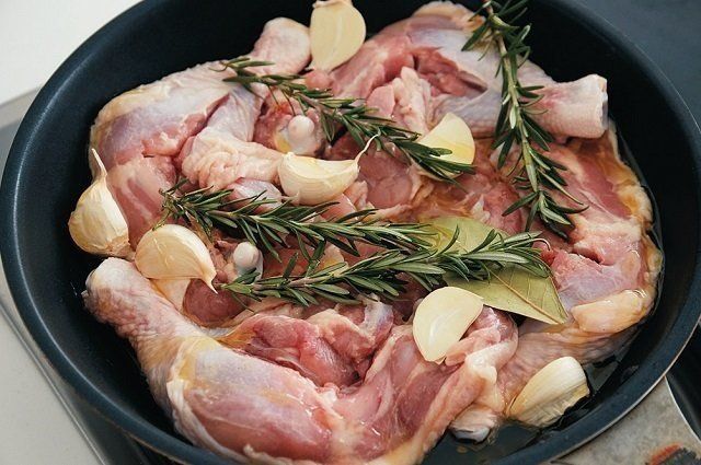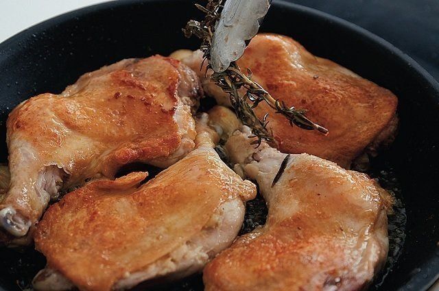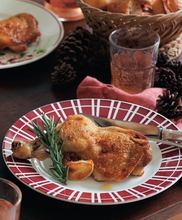 香り高いハーブ、にんにくと一緒に、じっくりと揚げ焼きするだけ。香ばしくパリッと仕上がったチキンは最高のごちそうに!