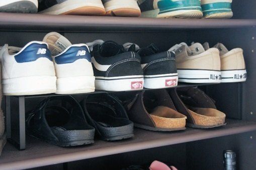 「靴箱の中の段を上下に仕切れるので、しまえる靴の量が2倍に。幅も靴箱に合わせて調節できるので、家族5人分の靴がきれいに収まって大満足」(kagiさん)