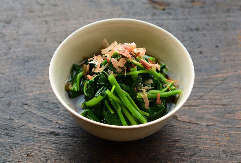 茎を先に茹で、葉は後から加えてサッと茹でるのがポイントです。ヌメリがあるため、他の葉物野菜と比べて、だしや醤油の味が絡みやすくなります。