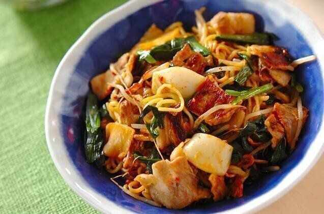 お肉や野菜をたっぷり味わえる、豚キムチ焼きそばのレシピです。お好みの具材をたっぷり入れて味わうのも◎。和食のメインにおすすめの一品で、お酒との相性もよさそうです!