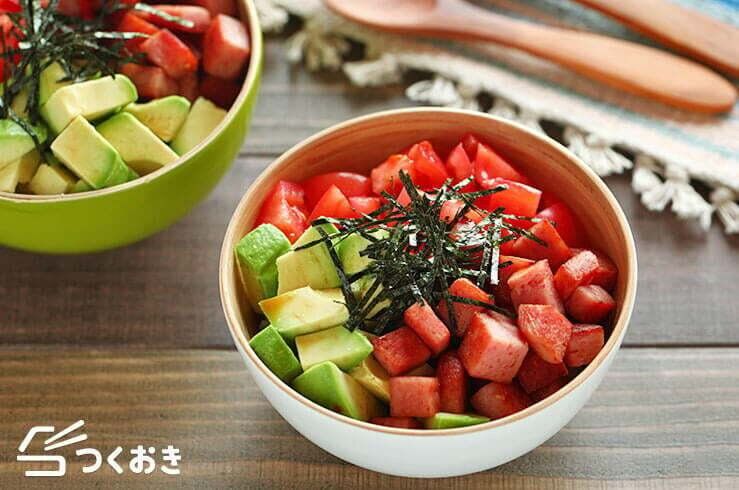 火を使わずにつくれるアボカドとツナの丼は、パパッとつくれるので疲れた日にピッタリ。うま味たっぷりのツナと、濃厚な味わいのアボカドがマッチ!レタス、トマトも乗せればサラダ感覚で食べられます。栄養がしっかりとれるのも、うれしいですね。