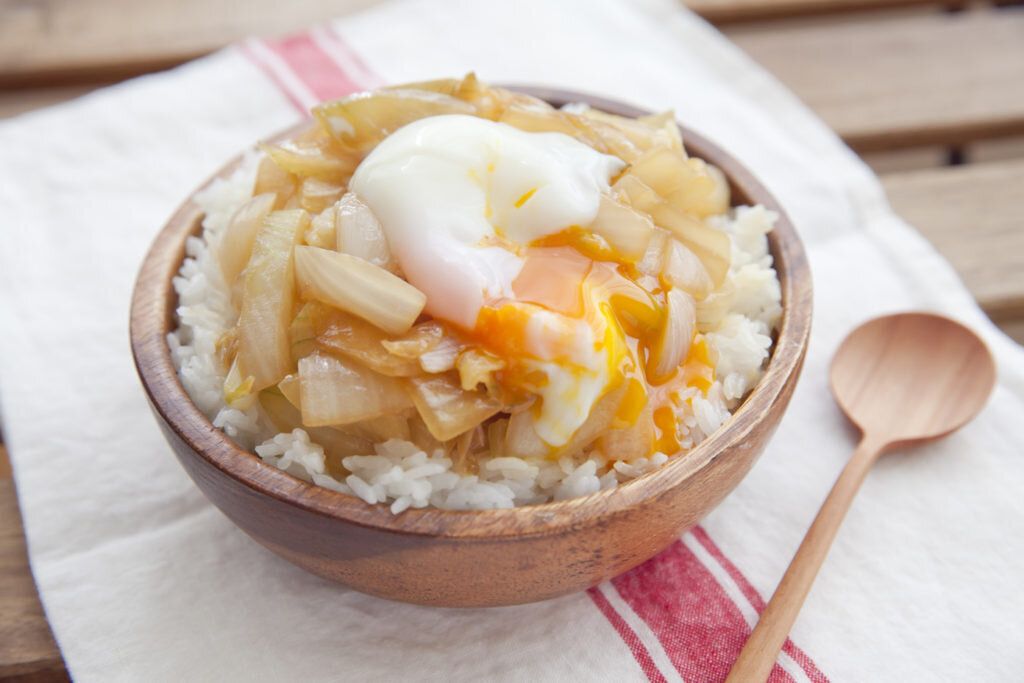 新玉ねぎたっぷり!山盛りWたま丼