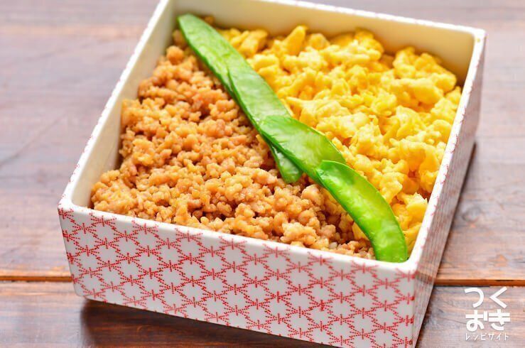 定番の鶏そぼろ丼を、フライパンひとつでつくれるお手軽レシピです。大人から子どもまで食べやすい、シンプルな味つけも魅力的。調理時間は10分程度なので、朝時間がないときのお弁当にも最適です。