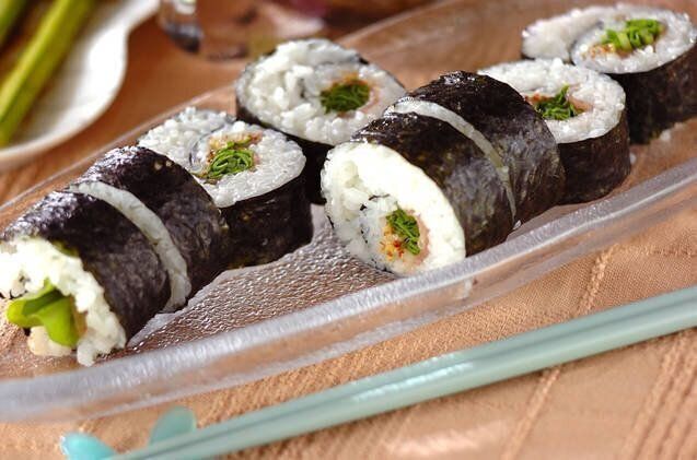 ルッコラと相性のいい生ハムを使い、洋風に仕上げた巻き寿司のレシピ。それぞれ風味が強い食材を、粒マスタードのピリリとした辛さがバランスよくまとめあげてくれます。ちょっとしたおもてなしにもぴったりのメニューですね。