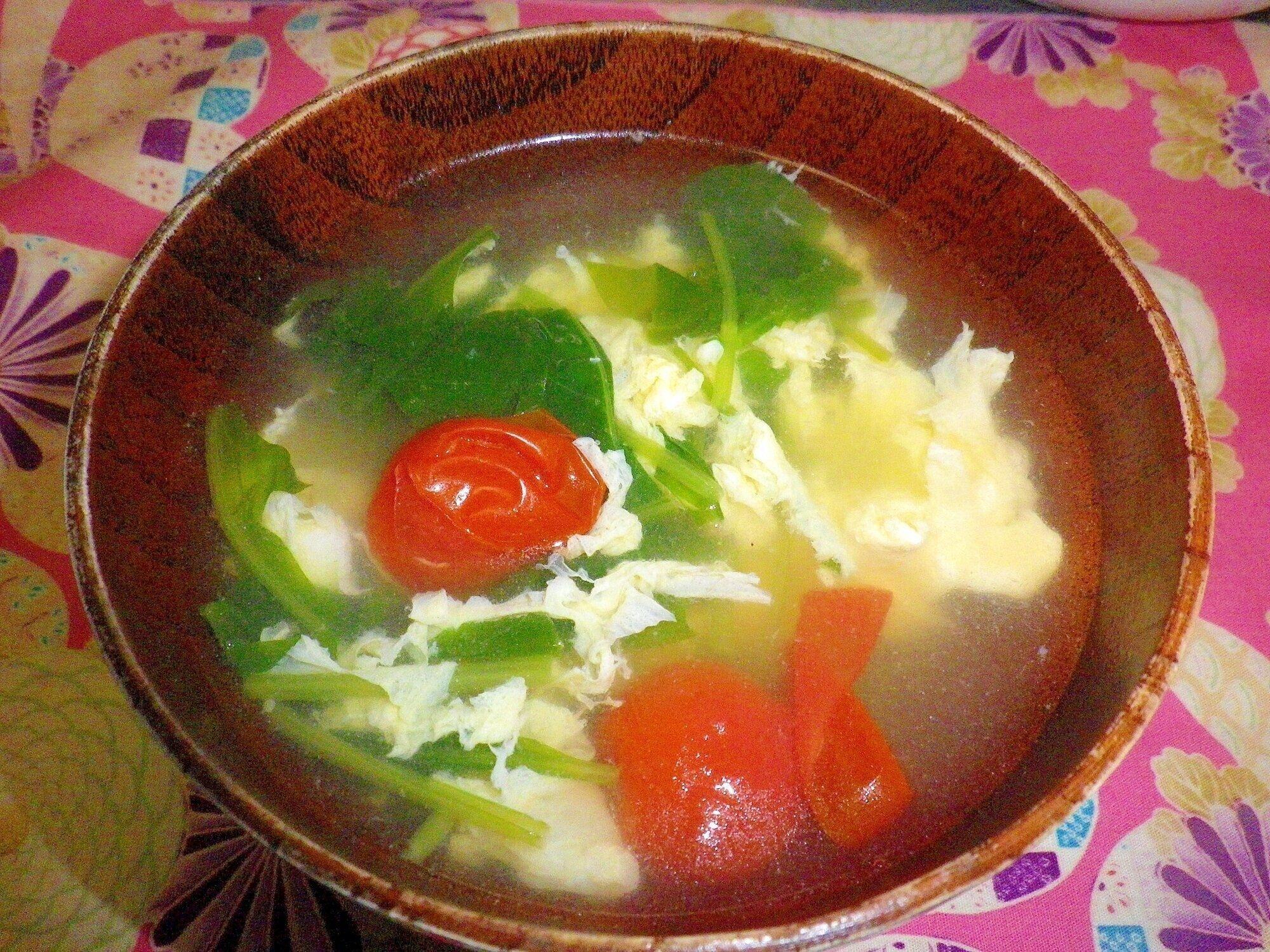 赤・黄・緑の鮮やかな色合いが食欲をそそる、プチトマトとルッコラのスープ。トマトをつぶしながら飲むと、トマトの酸味でスープの味わいが変わり、一度で二度おいしいですよ!