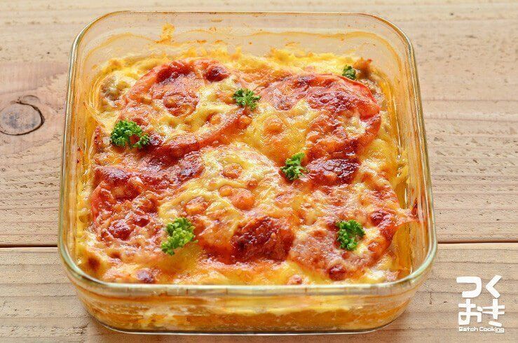 ナス、トマト、チーズの相性ばっちりのおいしさを堪能できそうな、オーブン焼きのレシピです。洋食の副菜にいかがでしょうか。細かく刻んだアンチョビも、味のアクセントになりそうですね!