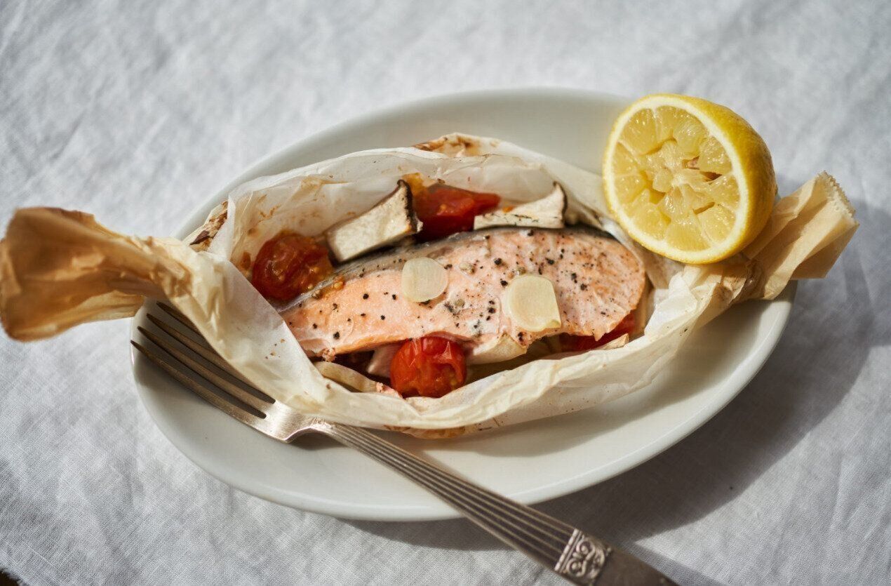 オーブンシートに包んでオーブンに入れるだけ!手軽につくれるサーモンの包み焼きレシピです。塩こしょうやレモンでさっぱりと食べられて、素材のうま味も味わえる一品。アルミホイルを使えばトースター調理も可能ですよ。