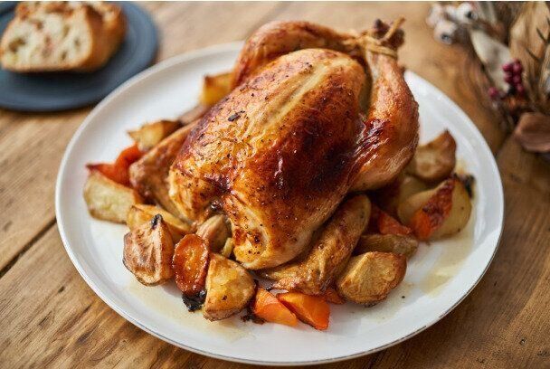 「チキンと野菜のオーブン焼きハーブ風味」は、チキンと野菜をオーブンで蒸し焼きにするレシピです。そのままテーブルに出して完成。彩りも鮮やかで、パーティーメニューにもよさそうですね。パンやワインとも相性抜群です!