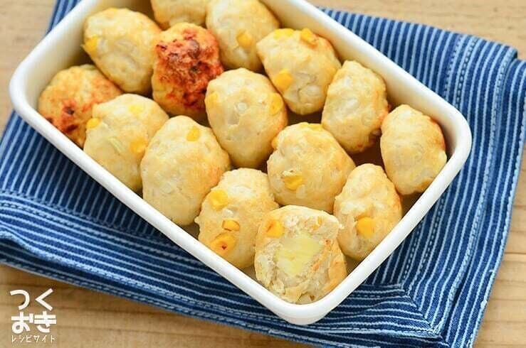 メインやお弁当のおかずにもってこいの、チーズインはんぺん鶏だんご。コーンやプロセスチーズのやさしい味わいに、白だしの風味、はんぺん入りの柔らか食感がマッチして止まらなくなりそうです。