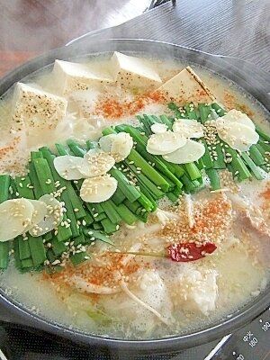 冬にピッタリ★自家製スープのニンニクたっぷりもつ鍋