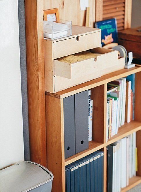プリントはいちどにどっと渡されると困るので、もらってきたら子どもたちに一時置き用の小棚に置いてもらうルールに。あちこちに置かれるのを防ぐだけでなく、ママが自分のタイミングでチェックできて◎。