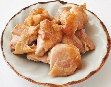 幅2㎝ の棒状に切った鶏もも肉を両面各4分焼き、上の調味料を入れてからめる。あればパセリ適量をのせる。