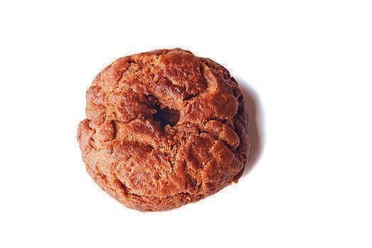 生地を3等分し、直径8㎝大に平たくまとめる。指で真ん中に直径約1.5㎝の穴をあける。