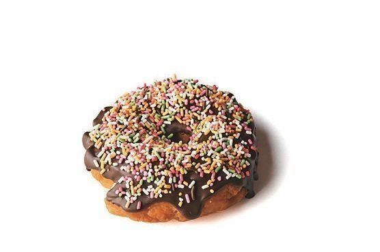 板チョコレート(ミルク)1枚(約50g)は刻んでボウルに入れ、湯せんで溶かす。基本のドーナツにチョコレートを垂らし、乾かないうちにチョコスプレー大さじ3をまぶす。
