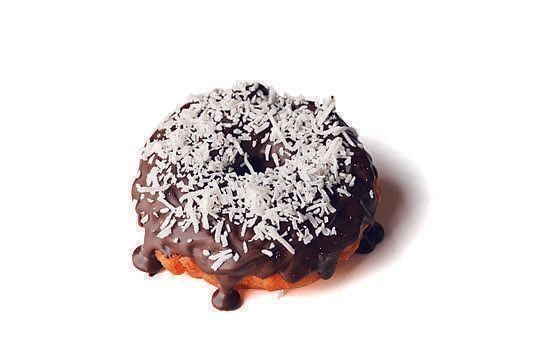 板チョコレート(ミルク)1枚(約50g)は刻んでボウルに入れ、湯せんで溶かす。基本のドーナツにチョコレートを垂らし、乾かないうちにココナッツファイン大さじ3をまぶす。