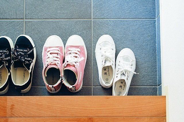 一度はいて泥や砂がついた靴はたたきに出しっ放しにし、靴箱には戻しません。靴箱には洗い済みの靴だけを収納して汚れを持ち込まないから、靴箱掃除が不要に。靴箱が汗やカビで臭くなることもありません。
