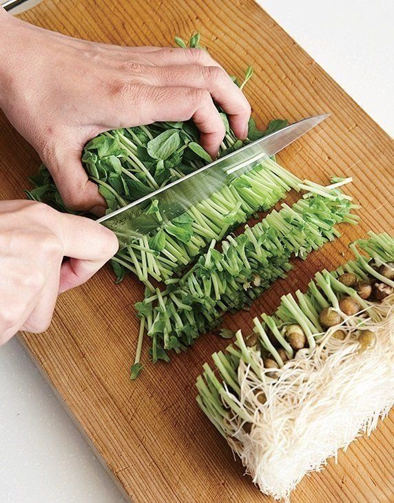 やかんに熱湯600㎖を沸かし始める。豆苗は長さ2㎝に切る。