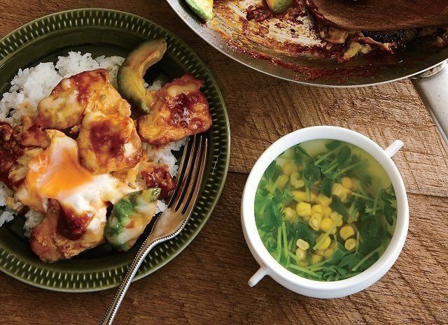 フライパンで主菜を作る合間に、スープの材料を器に入れ、湯を注げば完成!とっても手軽なので、忙しい日の夕飯にもってこいですよ。