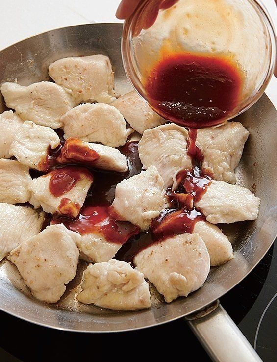 BBQソース+落とし卵+チーズで味は保証つき。ご飯にのせて食べてもおいしいですよ。BBQソースは「鶏胸肉」だけでなくほかのお肉にも合うので、「豚こま肉」で作ってもおいしく仕上がります。