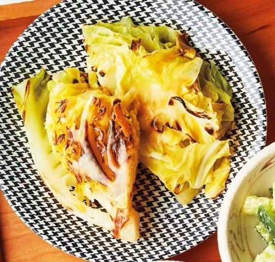 春キャベツ1/2個は、切り口と並行に半分に切る。フライパンにオリーブ油大さじ1/2をひき、切り口に近いほうのキャベツを入れて中火にかける。焼き色がついたら裏返し、残っている半分のキャベツをちぎって加え、塩小さじ1/4、粗びき黒こしょう少々、ピザ用チーズ20gを散らして5分ほど蒸し焼きにする。食べやすく切って器に盛る。